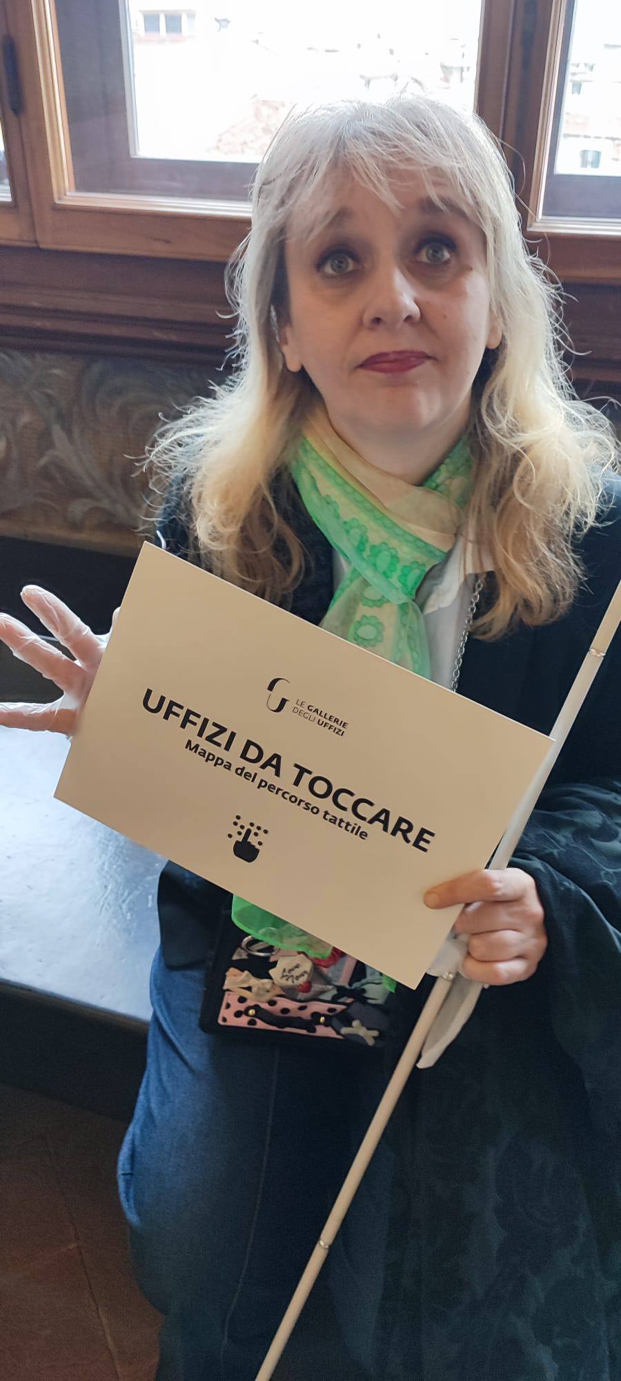 La bellezza è bellezza, anche se sfocata. Qui sono io agli Uffizi, munita di guanti, e autorizzata a toccare alcune sculture.