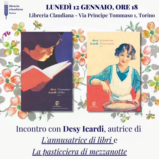 Lunedì 12 gennaio, alle ore 18.00, Desy Icardi incontrerà il gruppo di lettura della libreria Claudiana, in via Principe Tommaso 1 a Torino, per chiacchierare de L’annusatrice di libri (Fazi editore).