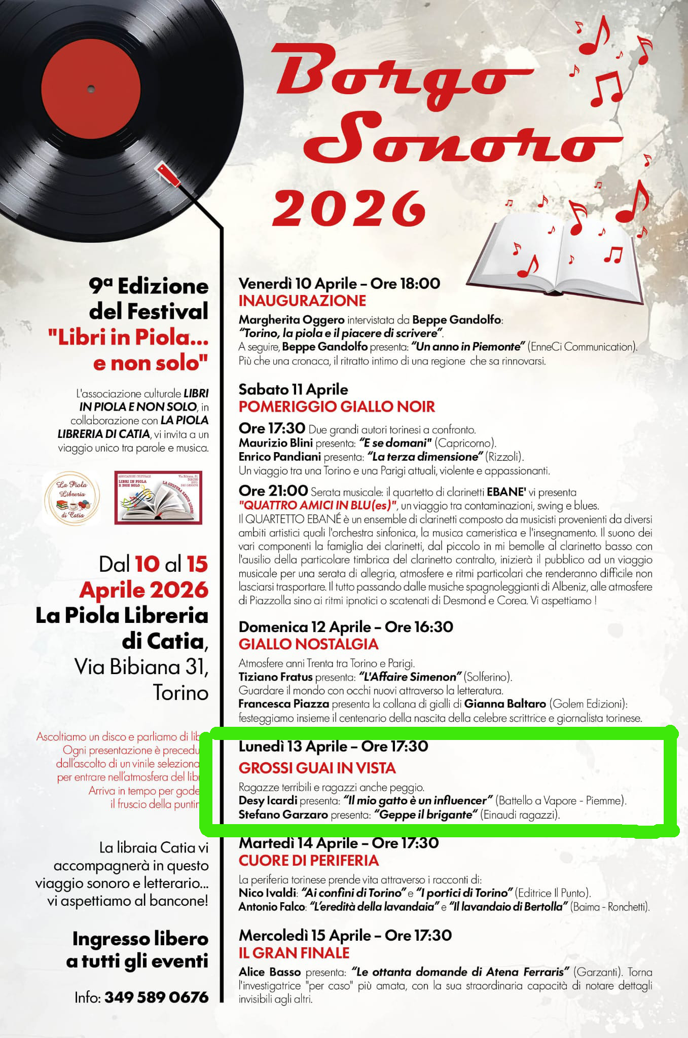 Lunedì 13 aprile, alle ore 17.30, gli autori Stefano Garzaro e Desy Icardi chiacchiereranno di letture per ragazzi a Borgo Sonoro, kermesse di musica e libri organizzata da La Piola libreria di Catia, in via Bibiana 31 – Torino.